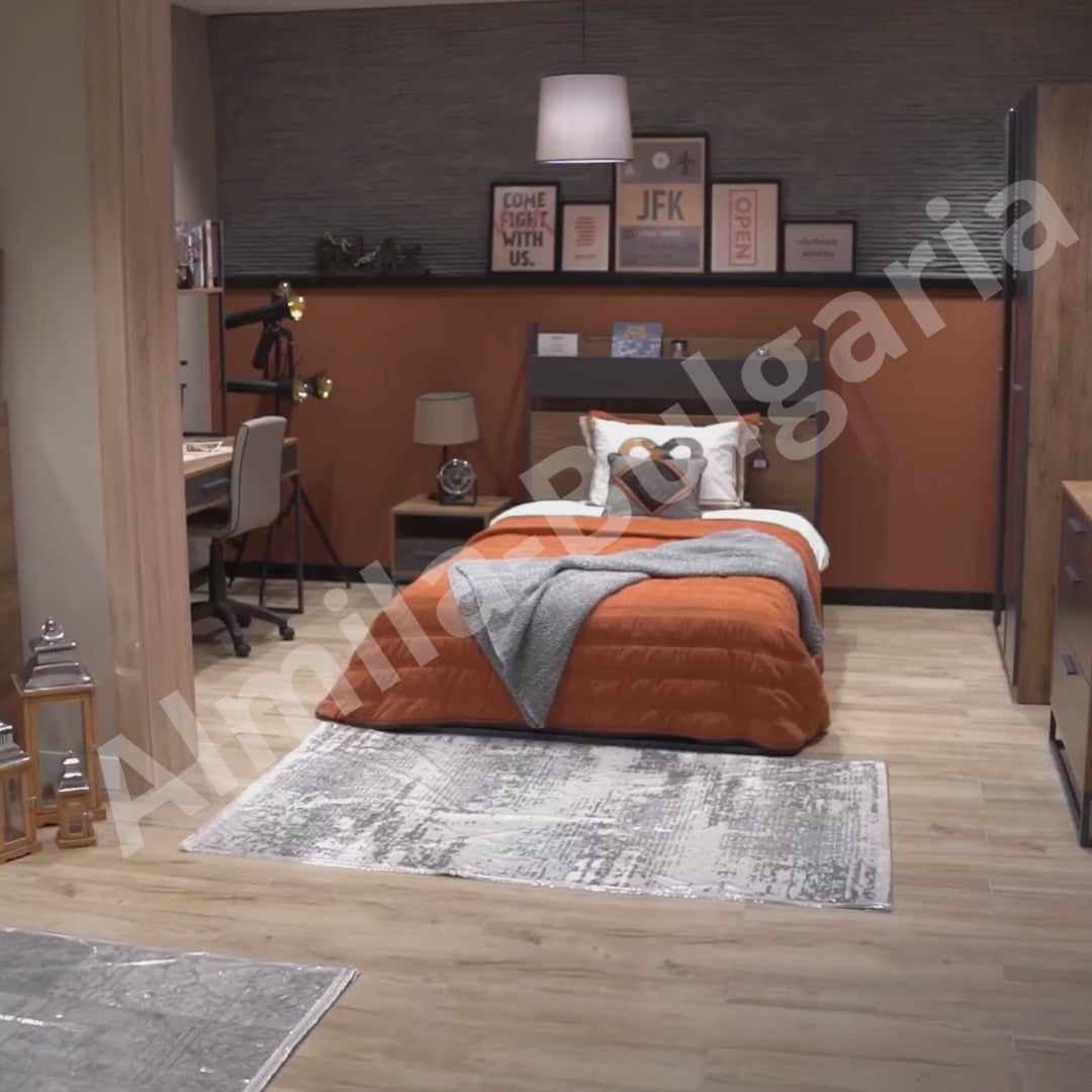 Дизайнът е в характерния стил на серия Legend - топъл дървесен декор в комбинация с графитен акцент и метални детайли. Стои модерно и тийн, без да натоварва интериора, и се комбинира отлично с легло, бюро и гардероб от същата серия за завършен комплект.